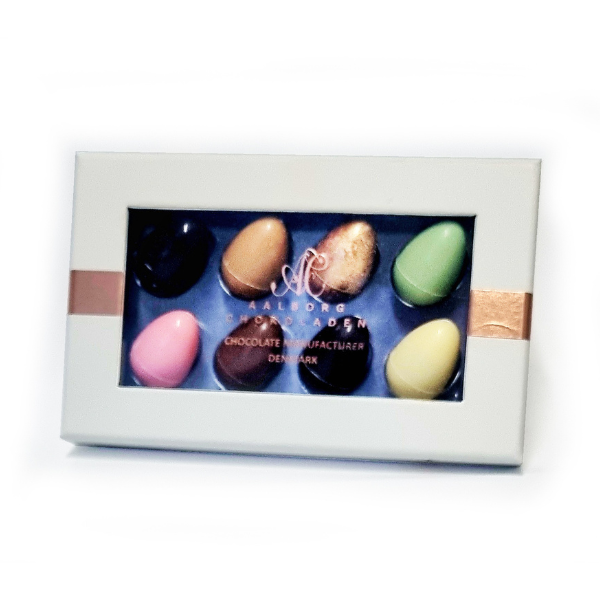 En fin påskeæske med 7 stk. af vores vagtelæg. Vagtelæggene er med smag af Pebermynte, Lakrids, Passion, Karamel, Jordbær, Lemon og Nougat