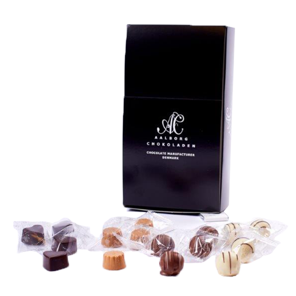 Ingredienser:  Sukker, kakaosmør, sødmælkspulver, kakaomasse, mandler, glukosesirup, vand, vallepulver, hasselnødder, veg. olie (raps), veg. fedt (palme-, kokos-), fedtfattig kakao, smørolie, fløde, vallekoncentrat, alkohol, mælkeproteiner, sødet kondenseret skummetmælk, salt, mælkesukker, naturlig aroma (vanilje, lime), aroma, emulgator (Sojalecithin, E492, E471, E440), surhedsreg. middel (E331), syre (E330), konservering (E211, E223, E202), antioxidant (E223), fortykningsmiddel (E401), farve (E150a, E102, grøn, E160a(ii), E160c), vodka,CUBA Passion vodka, Baileys, lakridspulver, Rose’s Lime, limepasta, mangopasta, kakaopulver, havtornspulver, Rom, Marc de Bourgogne, sølvstøv, frysetørret hindbær, guldstøv, ammoniumklorid.