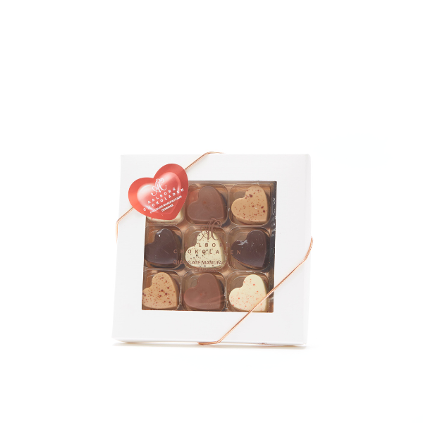 9 stk. fyldte chokoladehjerter